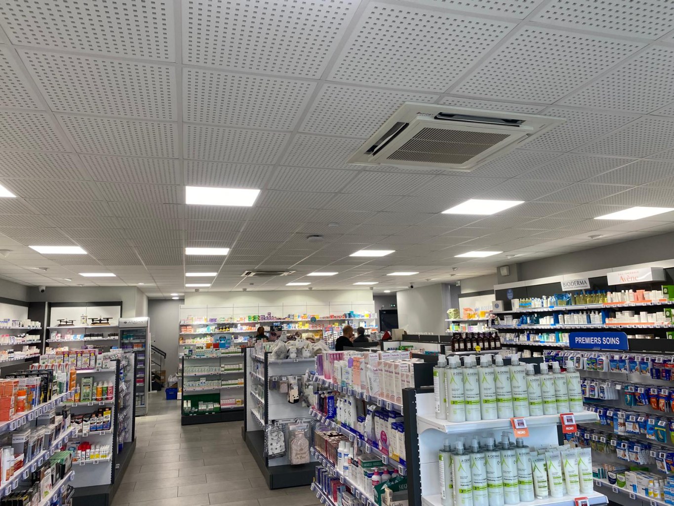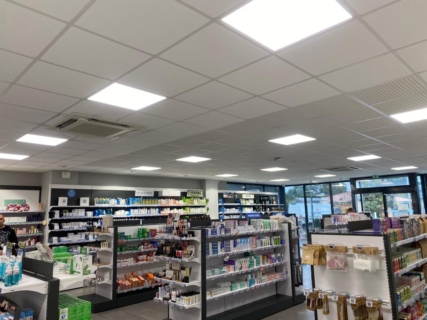 Équipement d'éclairage (Luminaires gondole murale et Éclairage surface de vente + bureau, luminaires extérieur et commandes d'éclairage, éclairage de sécurité /blocs de secours). Appareillages, prises de courant, précâblage Vdi, Système de sécurité incendie (visiophonie, système anti intrusion, vidéo surveillance IP. Prestation ingénierie (Études techniques, plans d'exécutions).